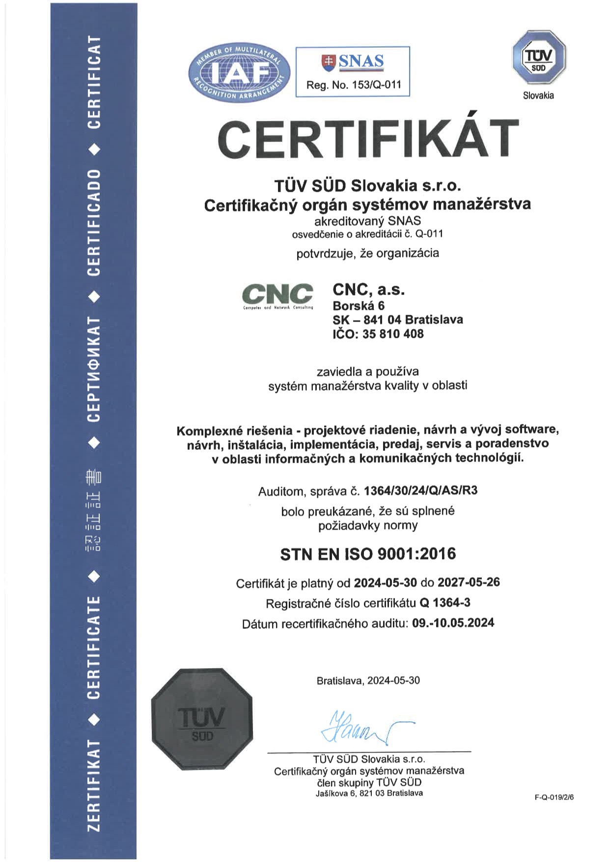 V roku 2000 sa majitelia rozhodli pre transformáciu na akciovú spoločnosť a zároveň CNC majetkovo vstúpila do skupiny podnikov Danubiatel.